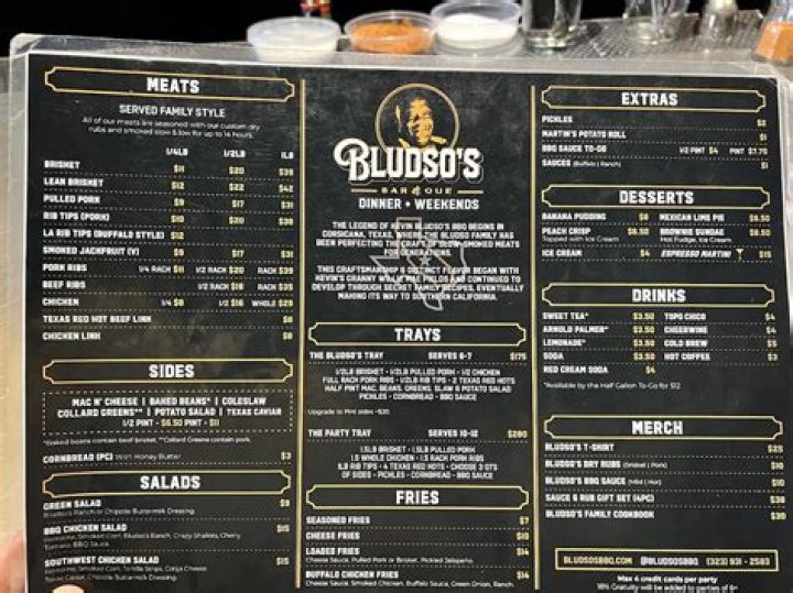 - Diversity: Bludso's menu boasts a wide range of barbecue dishes, catering to diverse tastes and preferences.