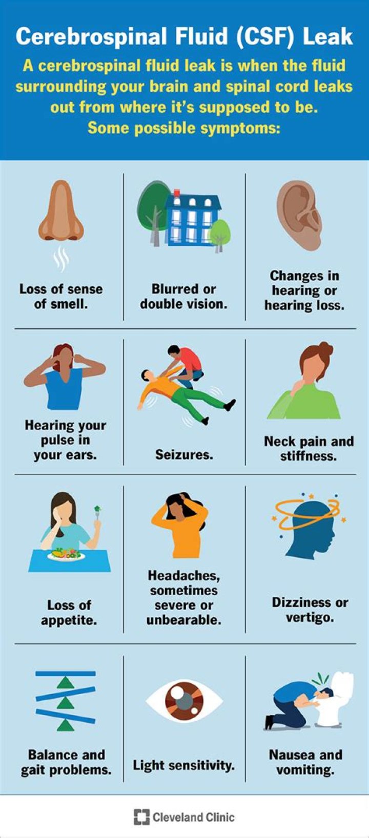 - Treatment: Surgery to repair the leak, or medication to reduce the production of CSF.