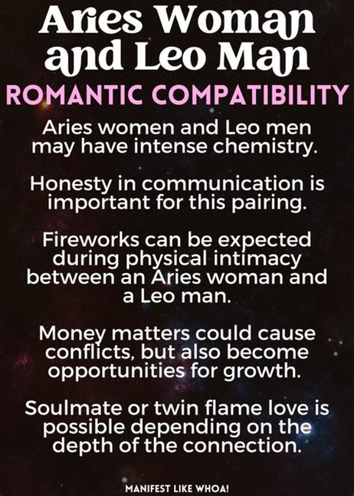 - Mutual Respect: Aries women and Leo men recognize and acknowledge each other's strengths, talents, and perspectives. They listen attentively to each other's opinions and ideas, even when they differ, fostering an environment of open and honest communication.